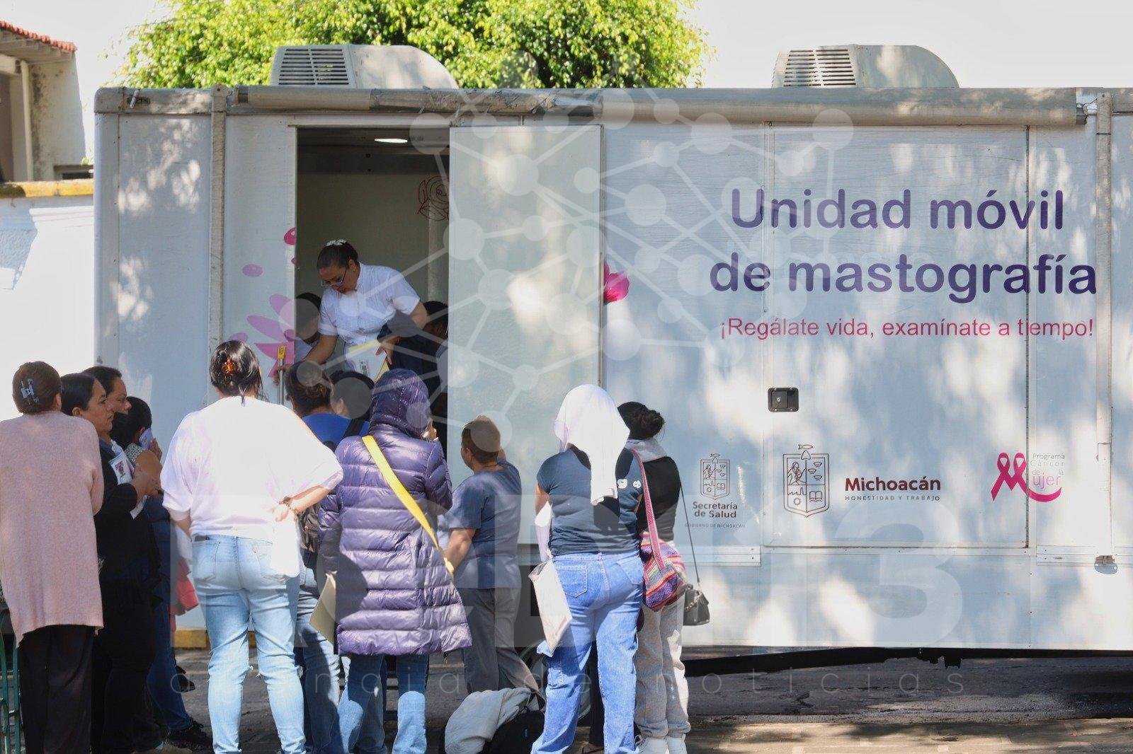 Morelia, Michoacán, 21 de abril de 2026.- La Secretaría de Salud de Michoacán (SSM) informa que la unidad móvil de mastografías se encuentra instalada este día en la Plaza del Carmen de Morelia, brindando atención gratuita a mujeres de 40 a 69 años de edad, para la detección oportuna del cáncer de mama.