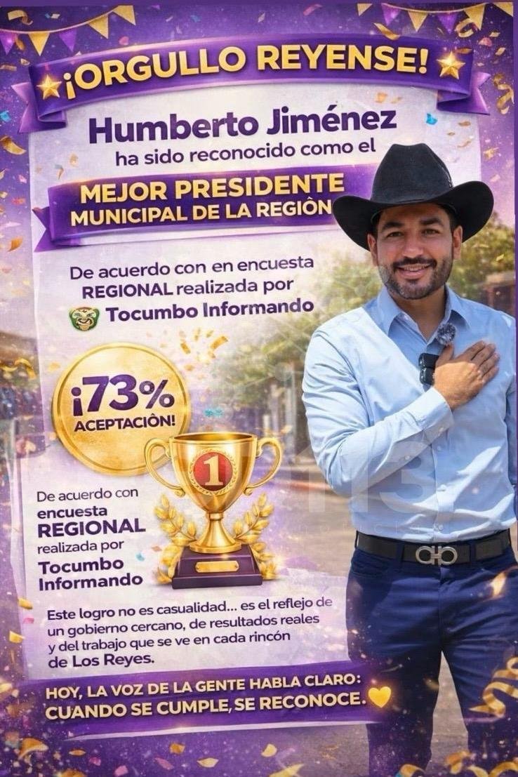Los Reyes, Michoacán, a 29 de marzo del 2026.– A pesar de las campañas de desinformación y ataques emprendidos por sus adversarios, el presidente municipal de Los Reyes, Humberto Jiménez Solís, continúa consolidándose como uno de los alcaldes mejor evaluados en Michoacán, gracias al respaldo ciudadano y a los resultados tangibles de su gobierno.