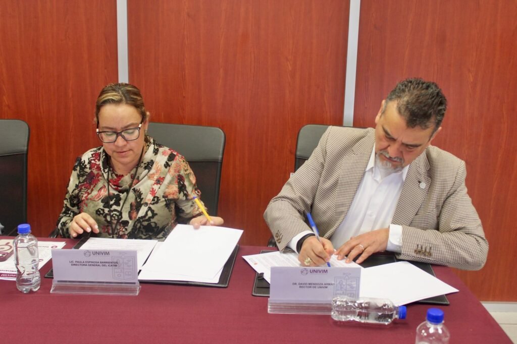 Durante la firma de convenio, la directora general del Icatmi, Paula Espinosa Barrientos, y el rector de la UNIVIM, David Mendoza Armas, coincidieron en la importancia de hacer sinergia entre instituciones para cumplir la instrucción del gobernador Alfredo Ramírez Bedolla, de impulsar la actualización laboral y profesionalización del capital humano de todo Michoacán.