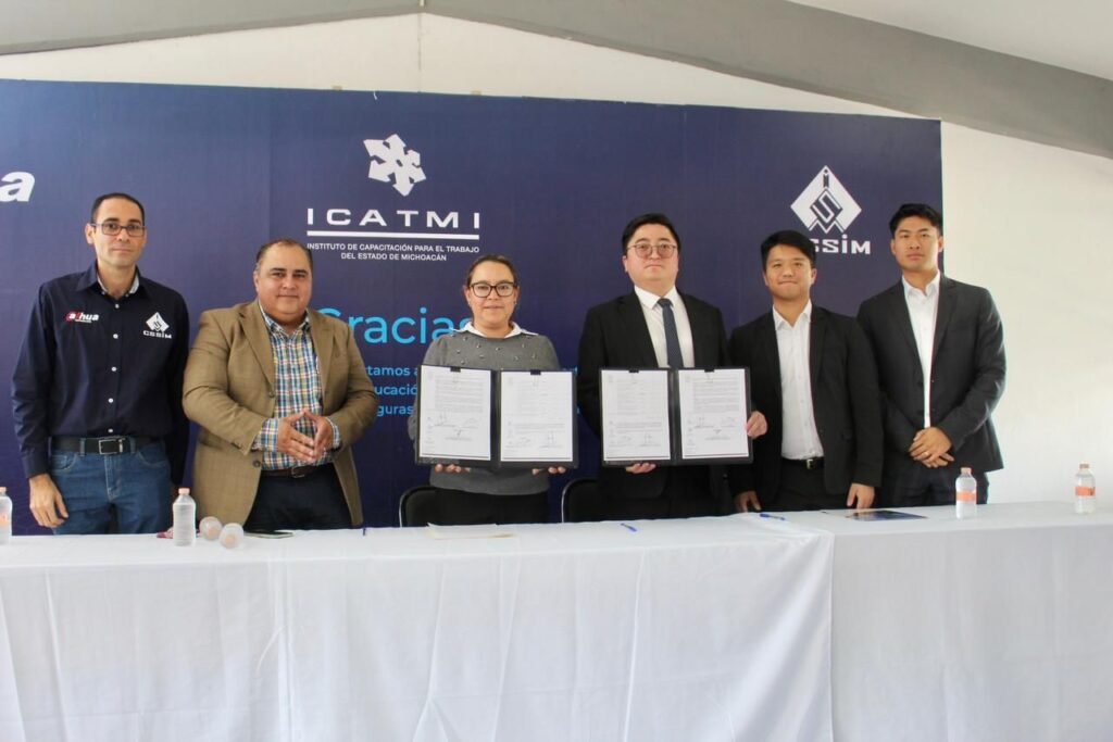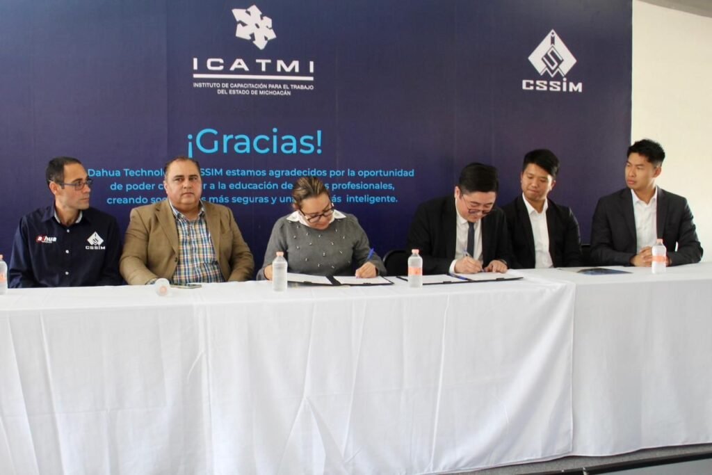 Morelia, Michoacán, 6 de diciembre del 2023.- El Instituto de Capacitación para el Trabajo del Estado de Michoacán (Icatmi), firmó convenio de donación con la empresa China “Dahua Technology”, para la donación de más de 15 equipos de videovigilancia.