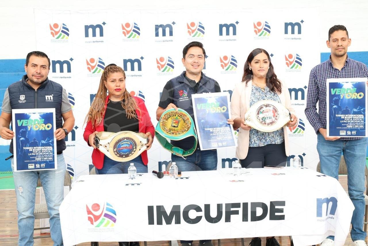 Morelia, Michoacán; 21 de abril de 2026.- Por primera vez en su historia, Morelia será escenario de un evento de talla internacional con la realización del Torneo Internacional de Boxeo “Verde y Oro”, presentado por el Instituto Municipal de Cultura Física y Deporte de Morelia (IMCUFIDE), en coordinación con la delegación estatal del Consejo Mundial de Boxeo (WBC).