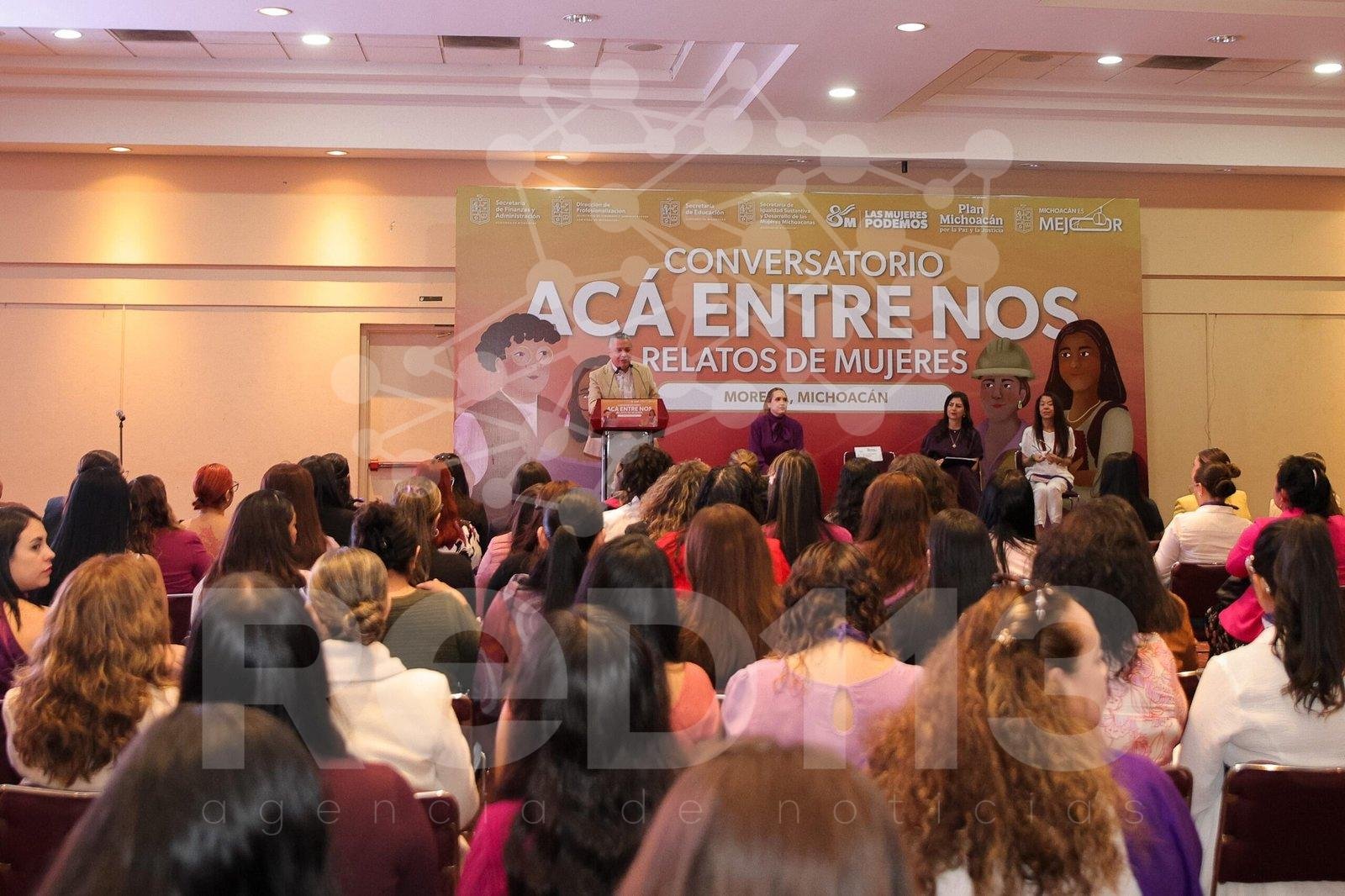 Durante la inauguración del conversatorio «Acá entre nos, relatos de mujeres», organizado por la Secretaría de Finanzas, a través de la Dirección de Profesionalización, se hizo público el reconocimiento a las mujeres michoacanas. Se destacó cómo su esfuerzo, creatividad y talento son fundamentales en los procesos de transformación tanto a nivel estatal como nacional.