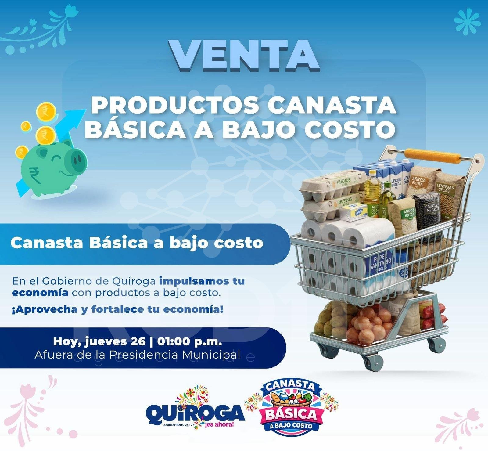 Quiroga, Michoacán, a 26 de marzo del 2026.– Con el objetivo de apoyar directamente el bolsillo de las familias quiroguenses, la presidenta municipal, Alma Mireya González Sánchez, puso en marcha la venta de productos de la canasta básica a bajo costo, una estrategia que acerca alimentos esenciales a precios accesibles.