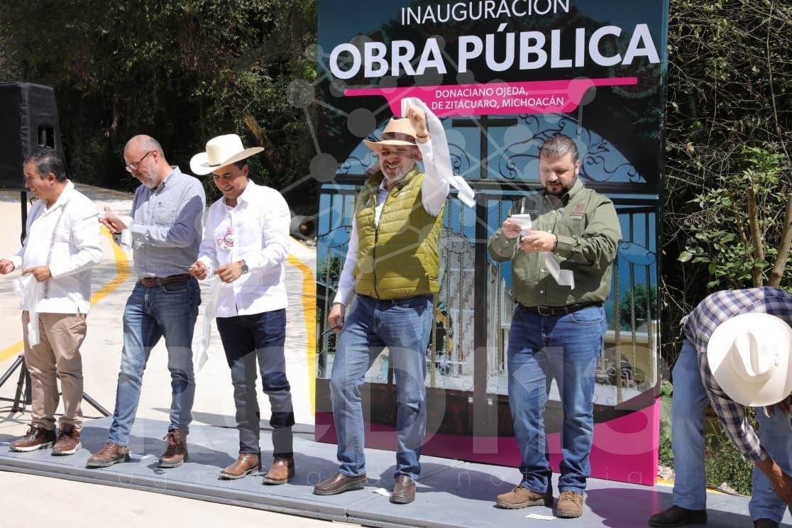Zitácuaro, Michoacán, 26 de octubre de 2025.- El gobernador Alfredo Ramírez Bedolla inauguró la construcción de la calle La Herradura, en la comunidad indígena con autogobierno de Donaciano Ojeda, en el municipio de Zitácuaro, para beneficio de cientos de habitantes.