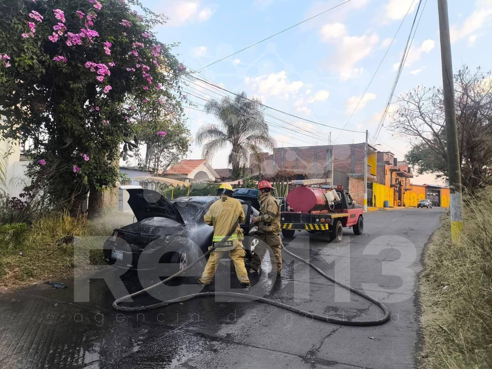 Minutos más tarde arribó personal de Bomberos Purépechas, quienes encontraron el automóvil envuelto en fuego, por lo que de inmediato iniciaron las maniobras para controlar y extinguir el incendio.