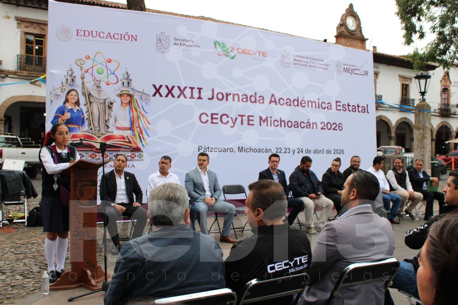 Pátzcuaro, Michoacán, 23 de abril de 2026.- El Colegio de Estudios Científicos y Tecnológicos del Estado de Michoacán (Cecytem) dio inicio a la 32 Jornada Académica Estatal, que se llevará a cabo del 22 al 24 de abril en Pátzcuaro, encuentro que reúne a 170 estudiantes de 64 planteles para poner a prueba sus conocimientos en diversos campos académicos.