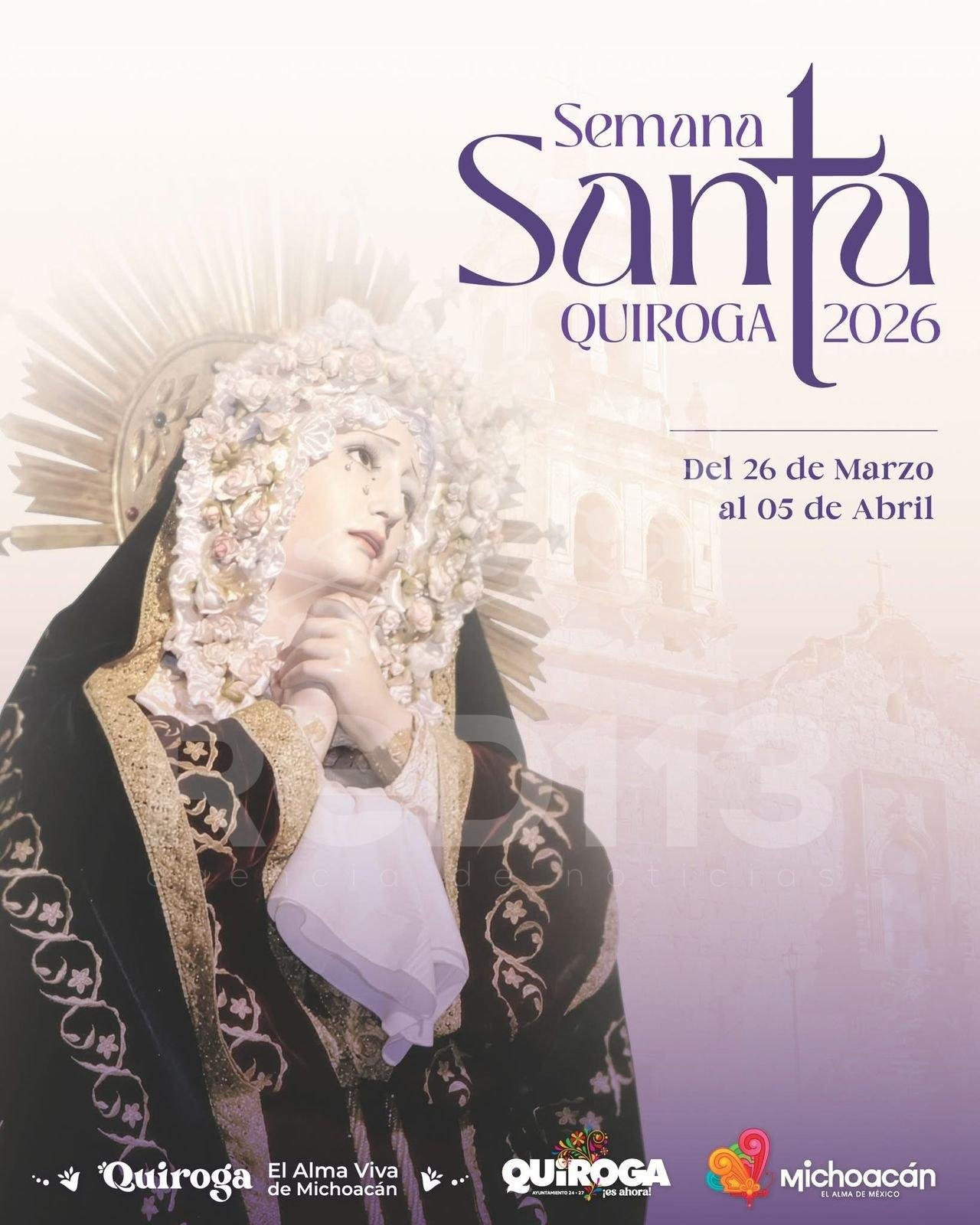 Quiroga, Michoacán, a 24 de marzo del 2026.– Con una agenda que fortalece la identidad cultural, tradicional y religiosa del municipio, el Gobierno de Quiroga, encabezado por la presidenta municipal Alma Mireya González Sánchez, invita a vivir la Semana Santa Quiroga 2026, que se llevará a cabo del 26 de marzo al 5 de abril.