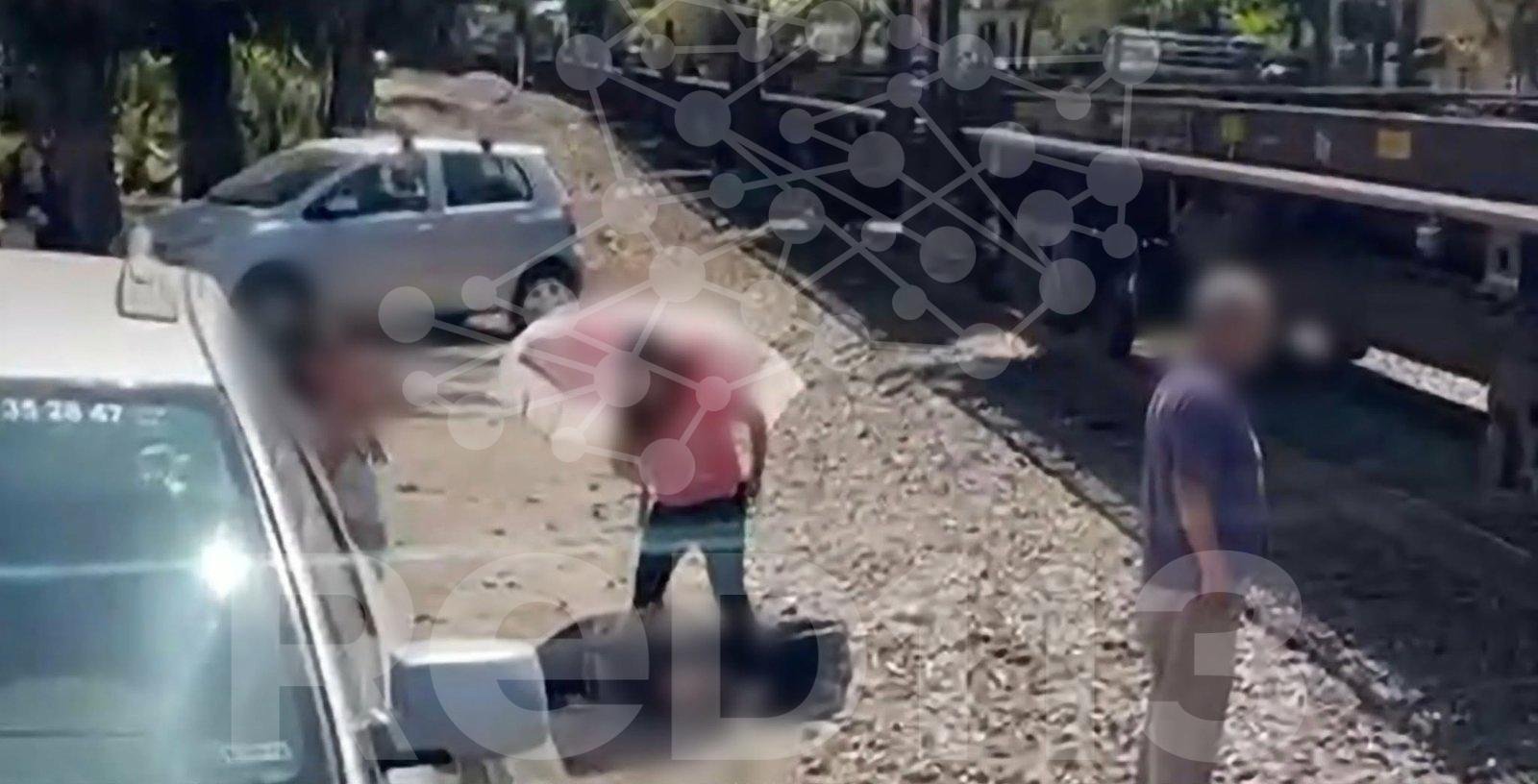 + El muchacho, quien estaba arriba de uno de los carros del ferrocarril, saltó cuando dicha máquina de hierro comenzó a moverse.