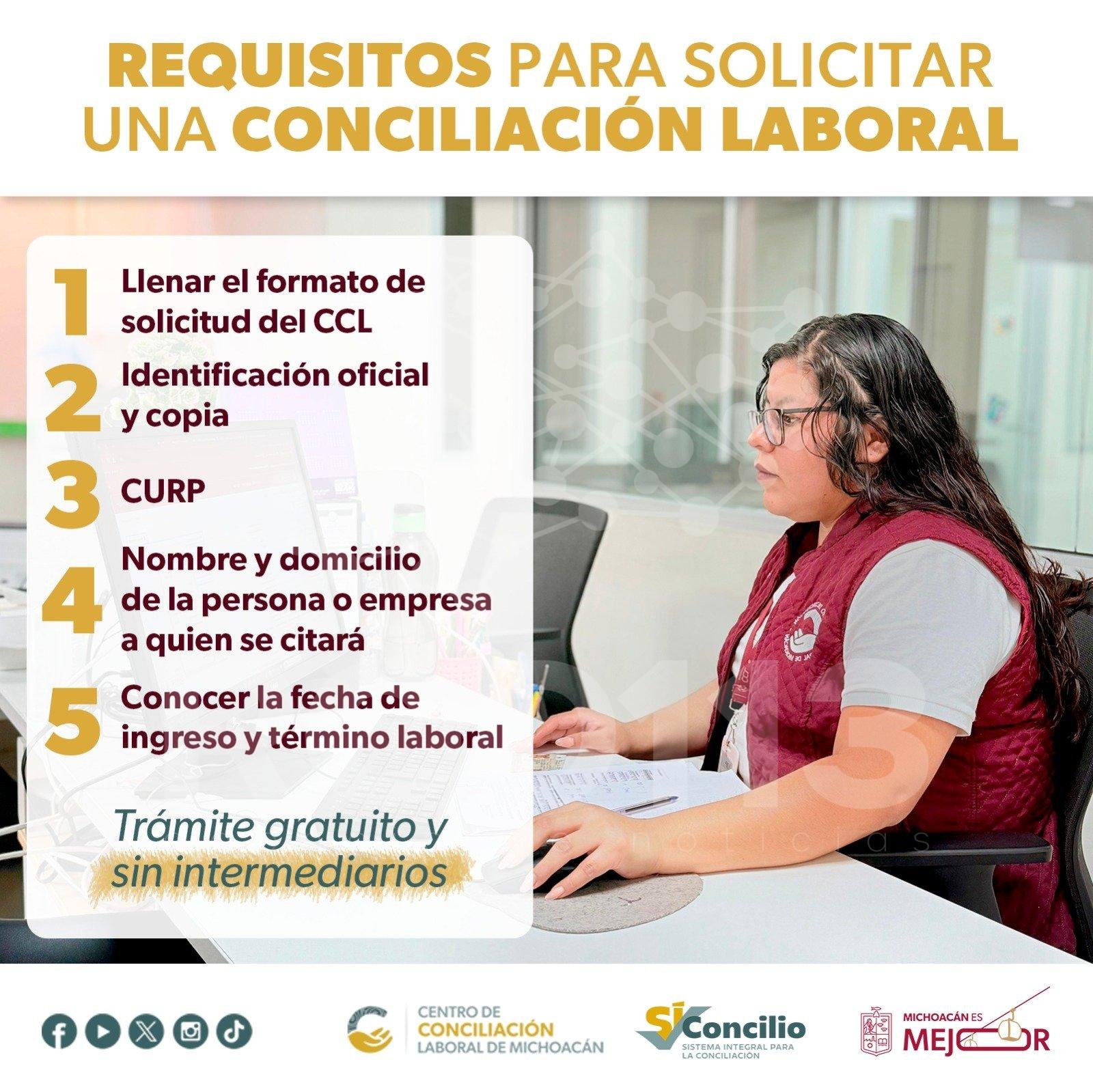 Morelia, Michoacán, 15 de enero de 2026.- El Centro de Conciliación Laboral de Michoacán (CCL) hace un llamado a la ciudadanía para conocer y acercarse con confianza a esta dependencia, cuya función principal es facilitar la solución de conflictos laborales de manera rápida, justa y equitativa, tanto para las personas trabajadoras como para las y los empleadores.