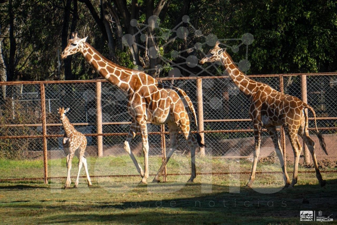 La nueva jirafita de Zoológico de Morelia ya está con su manada