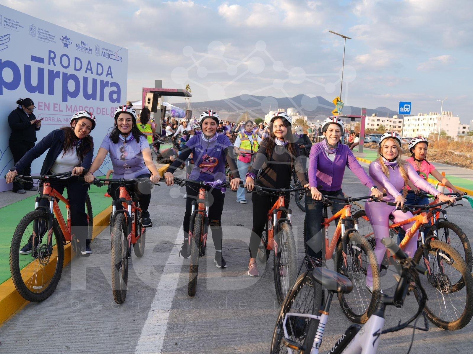 Morelia, Michoacán, 11 de marzo de 2026.- La avenida del Molcajete se llenó de ciclistas para conmemorar el Día Internacional de la Mujer con la “Rodada Púrpura”, que organizó la secretaria de Desarrollo Urbano y Movilidad, Gladyz Butanda Macías.
