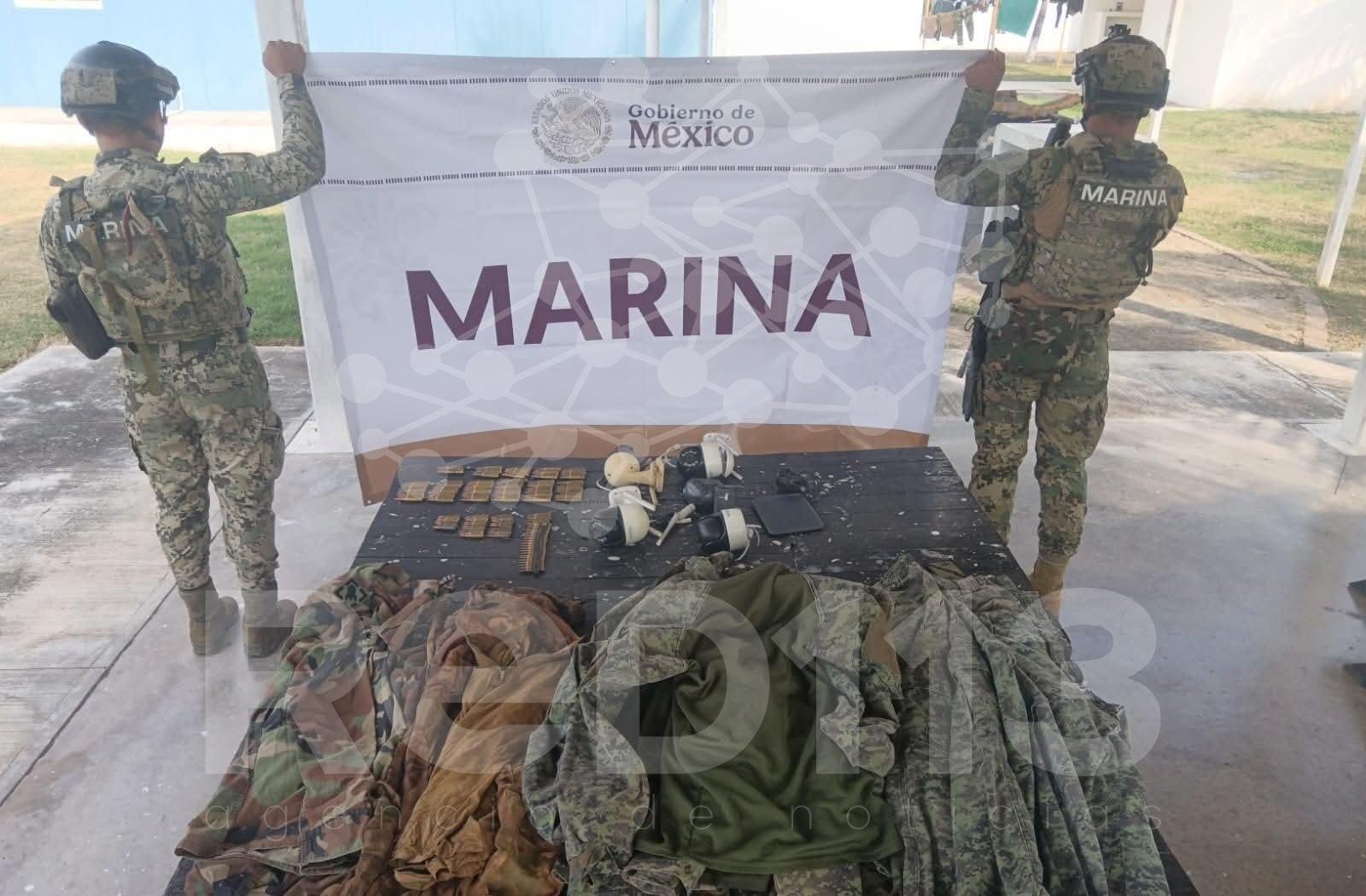 Marinos aseguran cámaras parásitas, uniformes apócrifos, cartuchos y una moto; hay detenido