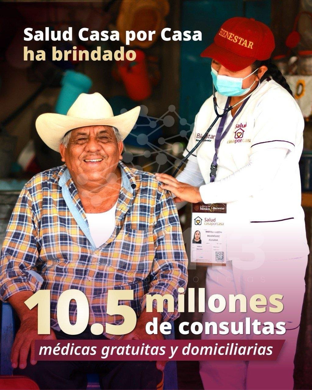 “Hasta el momento hemos realizado más de 10 millones 583 mil 702 de consultas domiciliarias, personalizadas y gratuitas para nuestros derechohabientes, hemos recorrido muchos territorios, colonias por todo el país”, abundó.