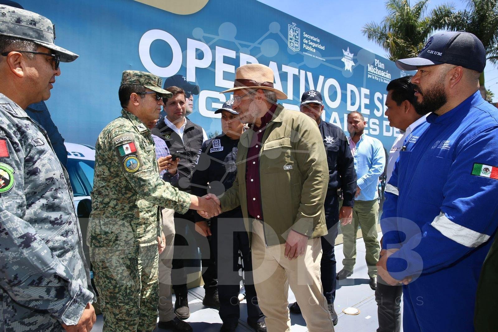 Huandacareo, Michoacán, 26 de marzo de 2026.- Michoacan está listo para recibir a miles de turistas y visitantes durante la temporada vacacional de Semana Santa, con el arranque del operativo de seguridad que encabezó el gobernador Alfredo Ramírez Bedolla, en el municipio de Huandacareo.