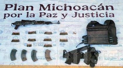 En el lugar, detuvieron a Máximo “N” y José “N”, en posesión de un arma de fuego tipo fusil, cuatro cargadores y 96 cartuchos útiles al calibre 7.62X39 milímetros, un chaleco táctico y una fornitura.