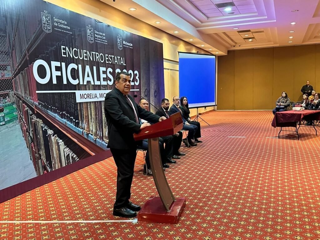 Morelia, Michoacán, 28 de noviembre de 2023.- Las y los oficiales del Registro Civil son el primer contacto de la ciudadanía, ellas y ellos deben responder con responsabilidad, humildad y honestidad al servicio que a diario realizan.