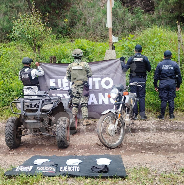 En el lugar, se localizó una camioneta Chevrolet Silverado, modelo 2019, con reporte de robo, y una cuatrimoto Can-Am Outlander, modelo 2022, aparentemente abandonadas.
