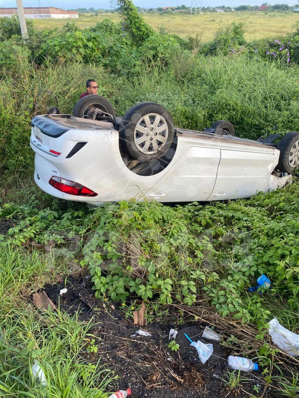 Buenavista, Mich.- 7 de octubre de 2025.- Una pareja resultó con heridas leves luego de que el vehículo en el que viajaban volcara la mañana de este martes sobre la carretera Buenavista-Tepalcatepec, a la altura de la gasolinera cercana al crucero de La Ruana.