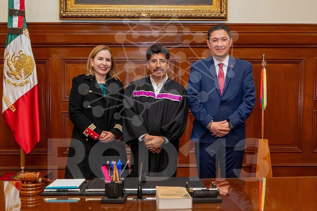 Durante el encuentro, el ministro presidente de la SCJN, Hugo Aguilar Ortiz, manifestó