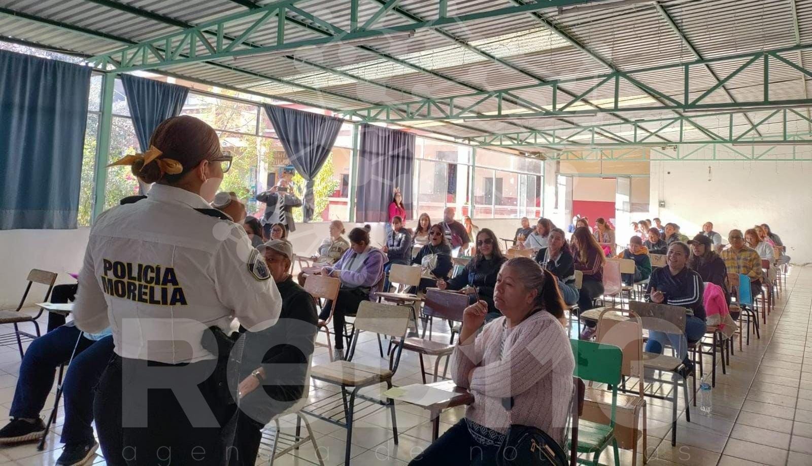 Policía Morelia imparte plática para padres de familia, en Escuela Primaria «Simón Bolívar»