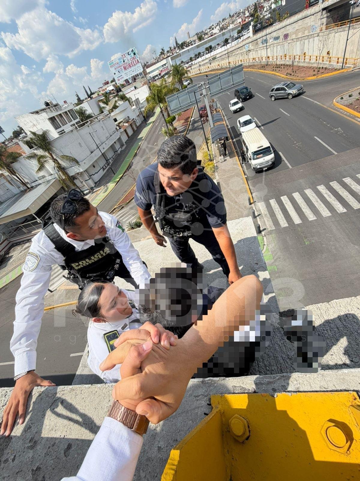 Gracias a la oportuna intervención de agentes de Policía Morelia, se logró frustrar un intento de suicidio registrado en el distribuidor vial de la salida a Mil Cumbres.