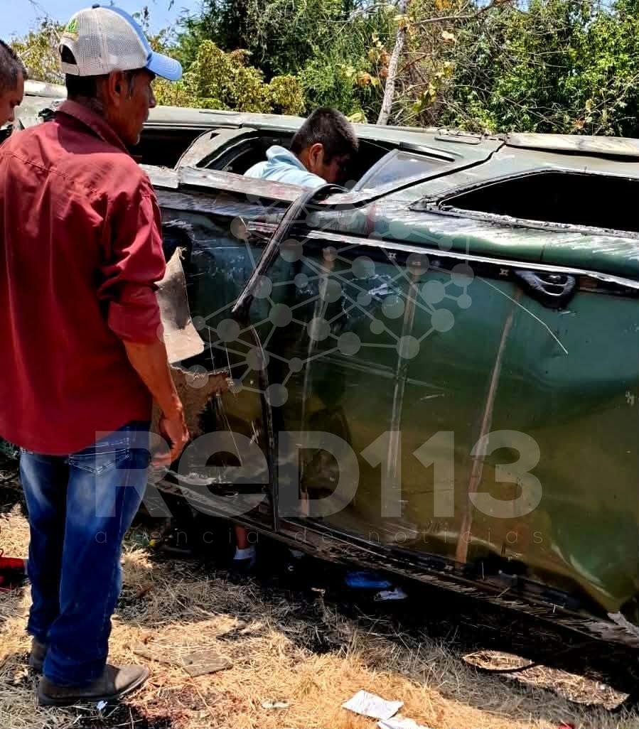 El aparatoso accidente tuvo lugar a la altura del kilometro 176 de dicha vialidad, en las cercanías de la comunidad conocida como “El Pitiri”, donde una llanta tronó y ocasiono que volcara una camioneta cerrada de la marca Toyota, color verde, misma que terminó por fuera de la carpeta asfáltica.