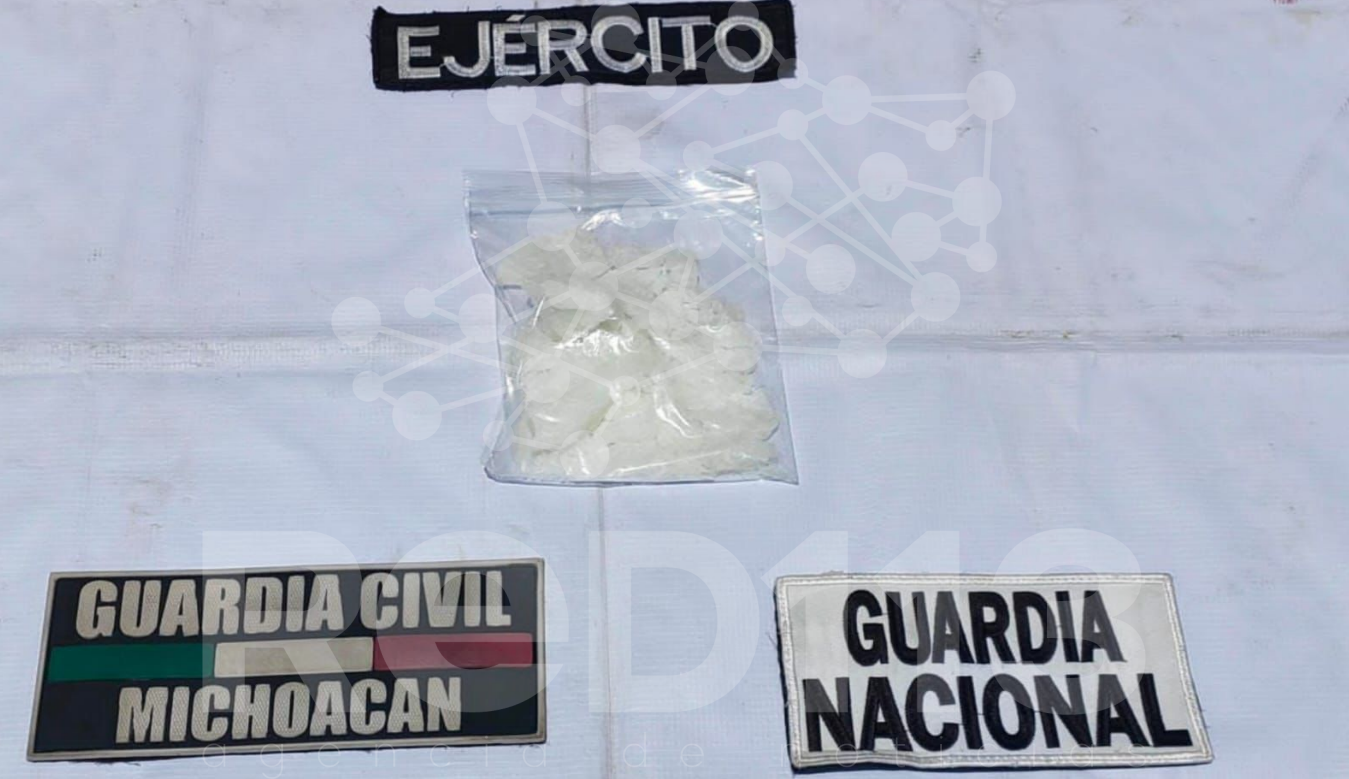 A los detenidos les aseguraron 123 gramos de metanfetamina, también conocida como “cristal, ice o hielo”, depositada en una bolsa de plástico y dos lonas de plástico con leyendas impresas.