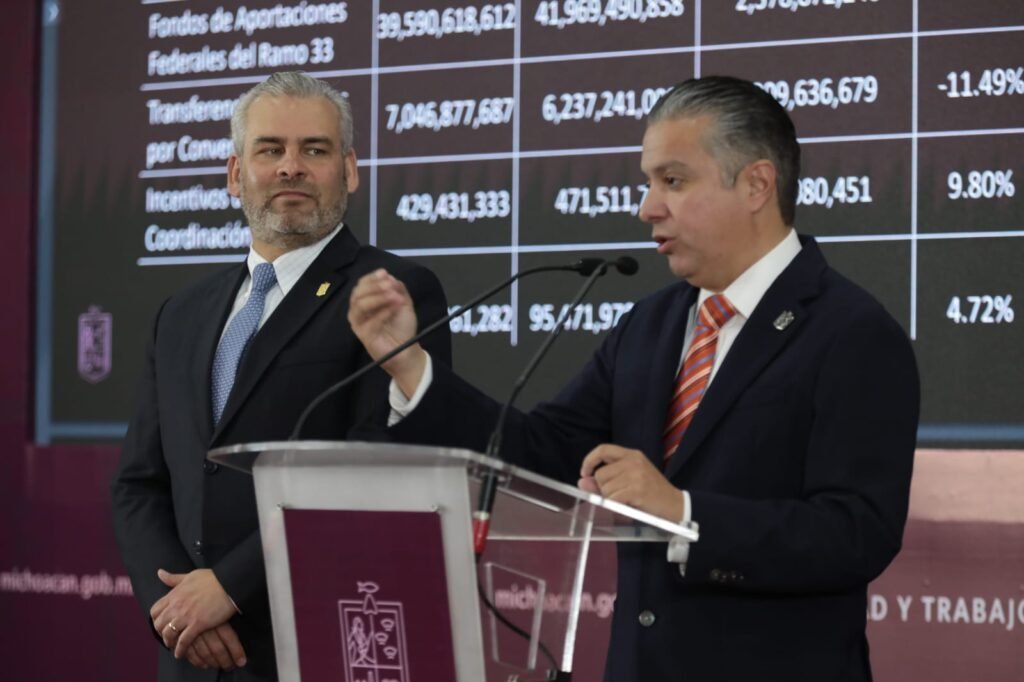 Morelia, Michoacán, 21 de noviembre de 2023.- El Gobierno de Michoacán «es de hechos y realidades a favor de la población, y un ejemplo claro es que gracias a las negociaciones de refinanciamiento que llevamos a cabo con las instituciones bancarias, por segundo año consecutivo destinaremos mayor cantidad de recursos a la inversión en infraestructura que al pago de deuda de largo plazo», informó el secretario de Finanzas y Administración, Luis Navarro.