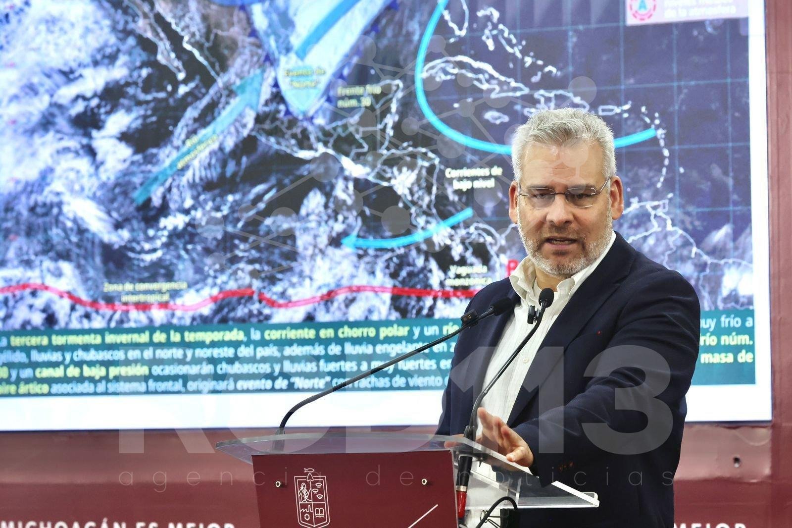 En conferencia de prensa, el mandatario dio a conocer que, de acuerdo con el Sistema Meteorológico Nacional, a partir de la madrugada del martes 27 de enero se esperan temperaturas mínimas de -5º a 0º C, con heladas para las zonas serranas de Michoacán.