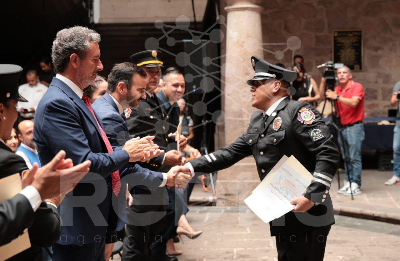Durante su discurso, destacó la trayectoria de algunos elementos presentes, quienes han demostrado un alto compromiso con su ciudad, arriesgando su vida para salvaguardar la integridad de la ciudadanía.