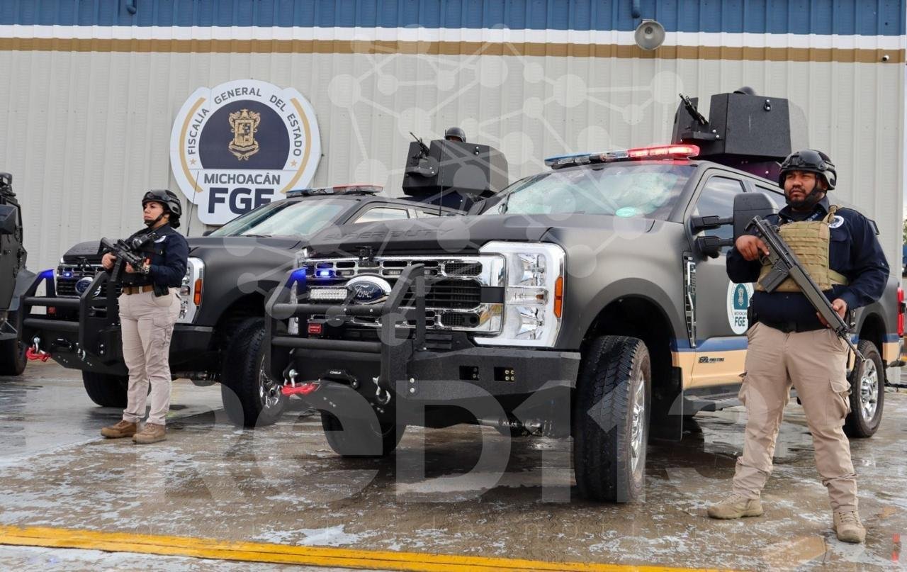Morelia, Mich.-  13 de abril de 2026.- La Fiscalía General del Estado de Michoacán (FGE) informa que, como parte de su estrategia de fortalecimiento institucional y operativa, fueron incorporados cuatro vehículos blindados tácticos a su parque vehicular, con el objetivo de robustecer las acciones de investigación y combate a la delincuencia en escenarios de alto riesgo.