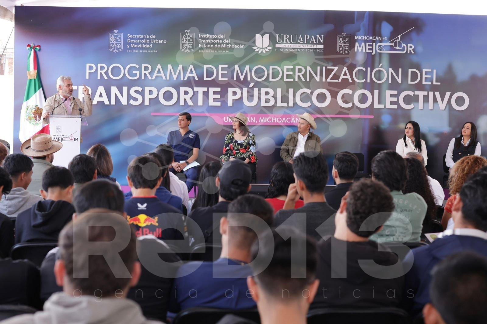 Ramírez Bedolla explicó que el Gobierno de Michoacán destina 250 millones de pesos en tres fases de recursos 100 por ciento estatales. Los vehículos serán operados por las cooperativas Tata Vasco y Colectivos Uruapan.