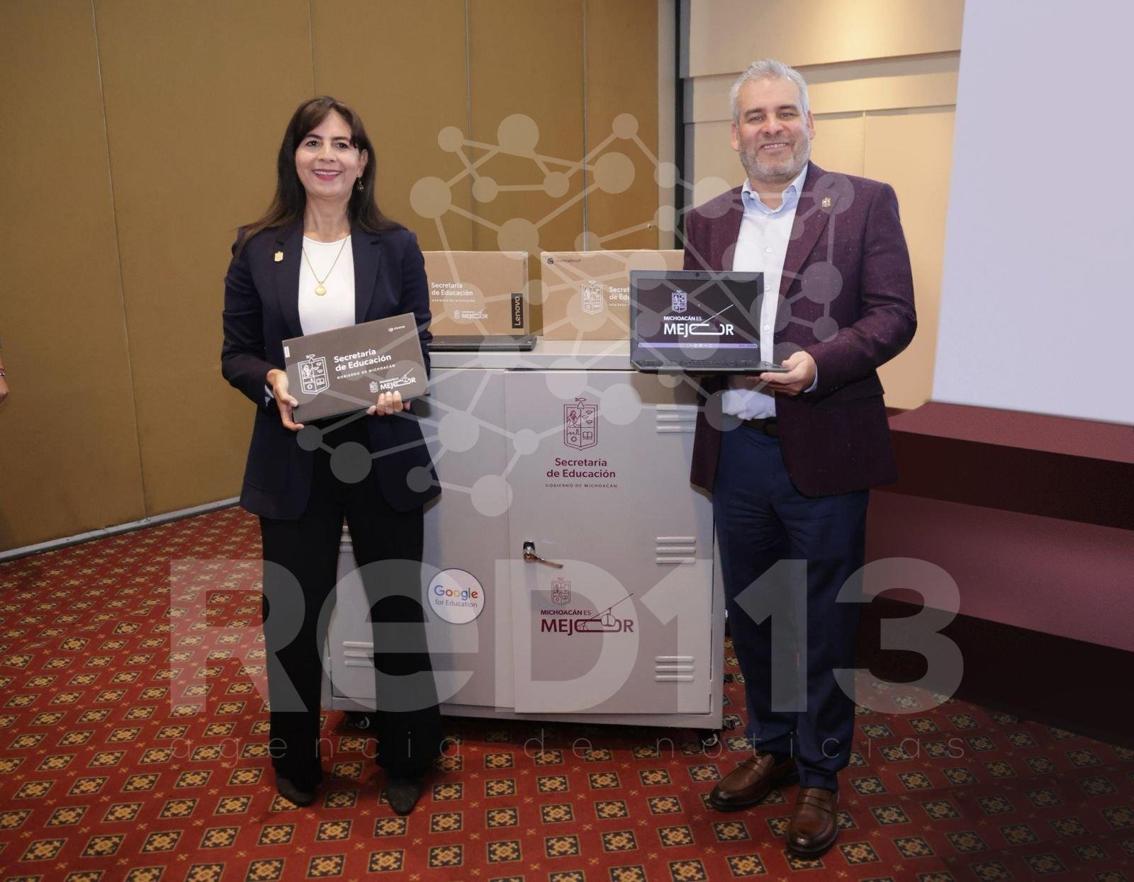 En conferencia de prensa, el mandatario explicó que se trata de 150 islas o estaciones de carga con 40 computadoras portátiles cada una que ayudarán a transformar la enseñanza y el aprendizaje para que los estudiantes alcancen su mayor potencial, así como a liberar aulas, gracias a la alianza entre el Gobierno de Michoacán y Google for Education.