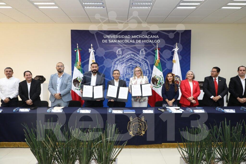 Acompañada por integrantes del gabinete legal y directoras y directores de diversas facultades, la rectora destacó la presencia de los representantes de la empresa y celebró signar este acuerdo, tras señalar que la UMSNH siempre tendrá las puertas abiertas para sumar en acciones que construyan y que tengan un beneficio para las y los nicolaitas y para la sociedad en general.