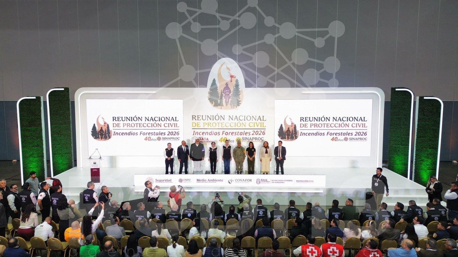 La coordinadora nacional de Protección Civil de la Secretaría de Seguridad y Protección Ciudadana, Laura Velázquez Alzúa, y la gobernadora del estado de Baja California, Marina del Pilar Ávila Olmeda, inauguraron este día la Reunión Nacional de Protección Civil de Incendios Forestales 2026.