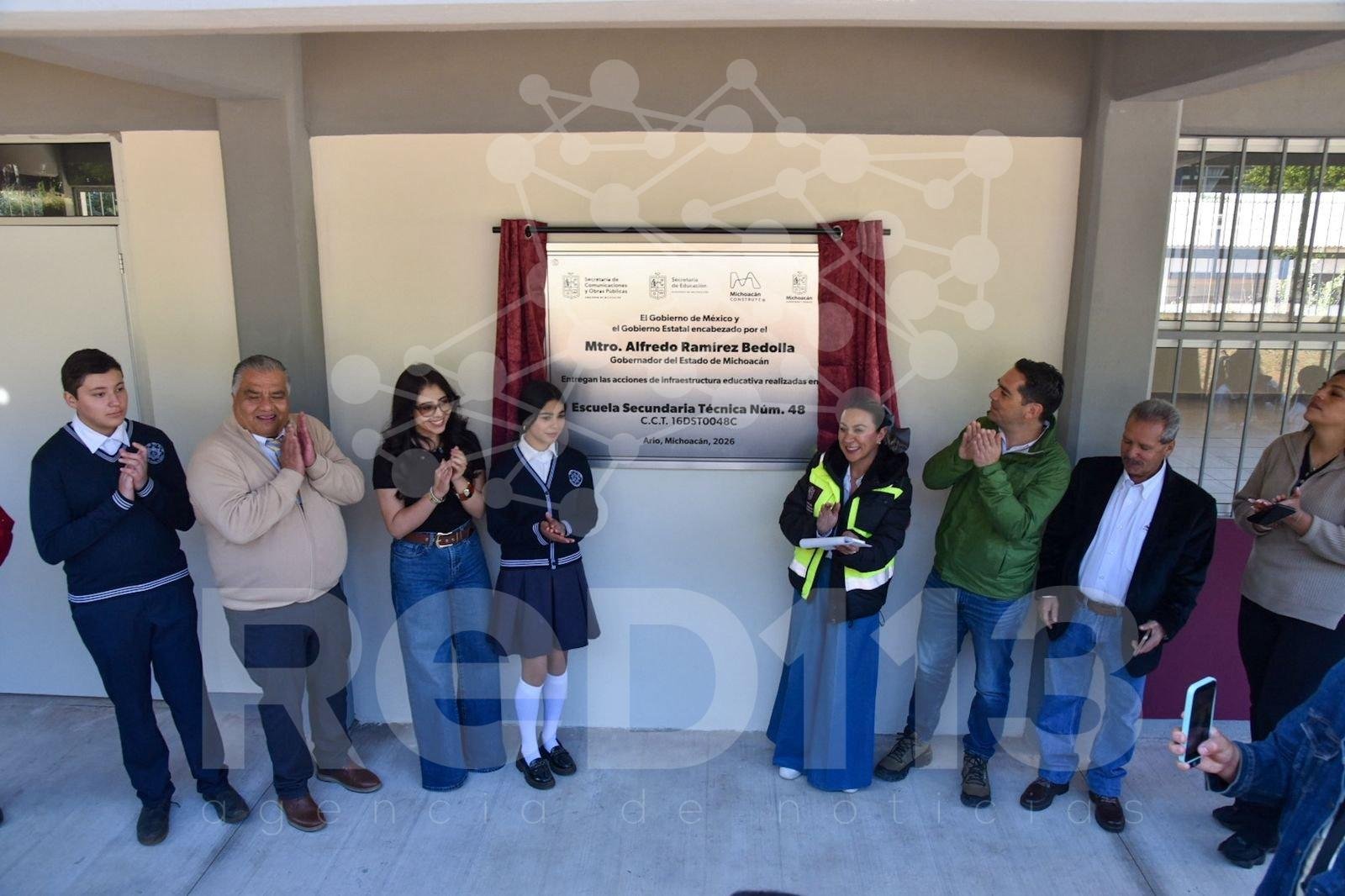 Asimismo, el secretario inauguró infraestructura en la Secundaria Técnica 48 de Ario de Rosales. Las mejoras incluyen un nuevo módulo sanitario y comedor, así como la rehabilitación integral de cuatro edificios. La obra se complementó con la construcción de jardineras, andadores y rampas de accesibilidad, beneficiando directamente a una comunidad de 686 alumnos.