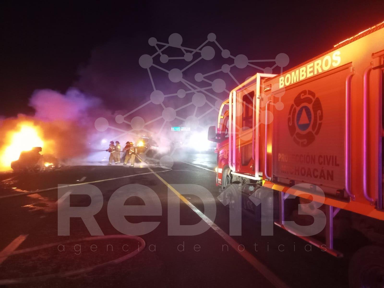 Se apreció que el vehículo siniestrado es de la marca Chevrolet Chevy, color blanco. En el sitio se presentaron unos patrulleros municipales y bomberos Morelia, éstos últimos sofocaron la lumbre.