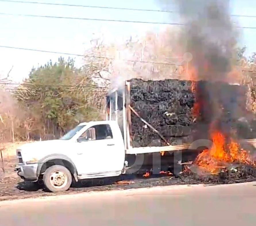 Huetamo, Mich.- Jueves 12 de marzo de 2026.- Una camioneta con plataforma se incendió durante la tarde de este jueves sobre la carretera Huetamo–San Lucas, informaron autoridades policiales y de rescate, las cuales agregaron que el siniestro se generó debido a una falla mecánica.