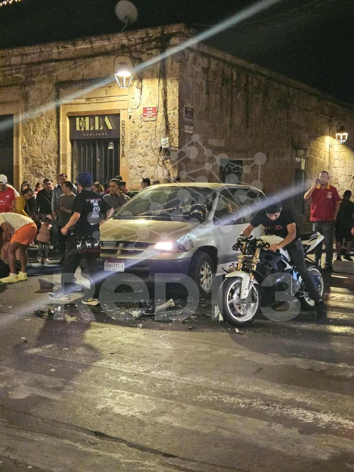 Morelia, Mich.- 1 de diciembre de 2025.- Un choque entre una motocicleta y una camioneta dejó a una persona lesionada sobre la avenida Madero Oriente, en el Centro Histórico de la ciudad de Morelia, comentaron fuentes policiales.