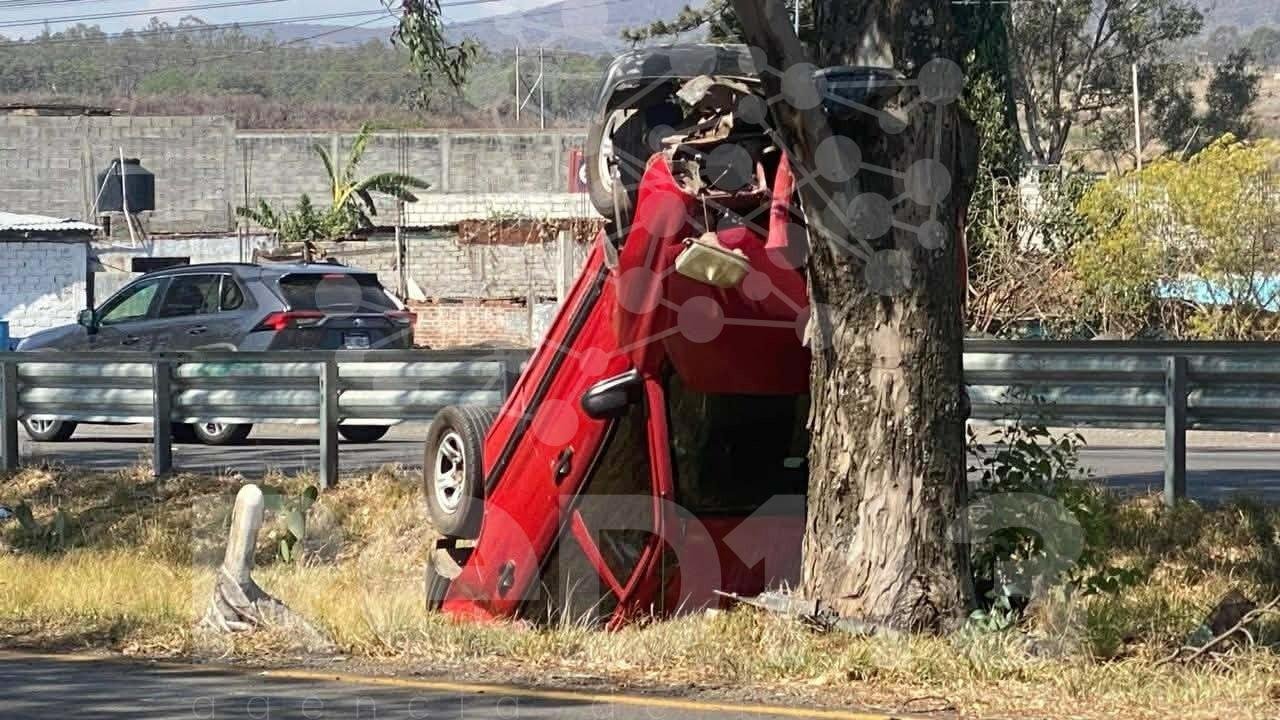 El primer percance ocurrió sobre la carretera Morelia-Pátzcuaro, en el sentido hacia la capital michoacana, a la altura de Uruapilla. Se trató de un choque por alcance entre camionetas Chevrolet Tracker; una de ellas, tras el impacto, se salió de la carpeta asfáltica, cayó a una cuneta central y se estrelló contra un árbol.