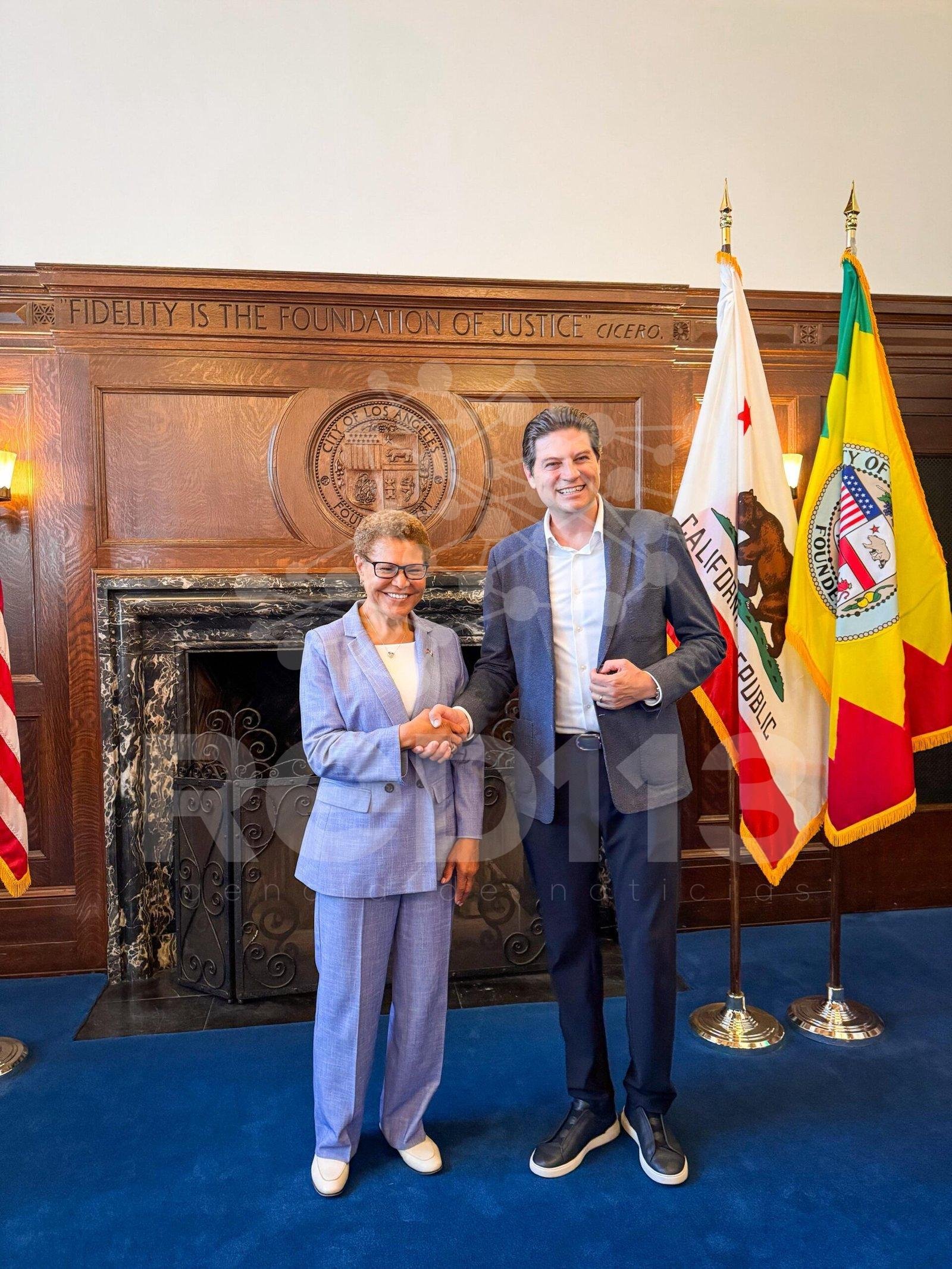 Los Ángeles, California; 30 de junio de 2025.- El Presidente Municipal de Morelia, Alfonso Martínez Alcázar, se reunió este lunes con la alcaldesa de Los Ángeles, Karen Bass, a quien le reconoció la lucha y defensa que hace a favor de los migrantes.