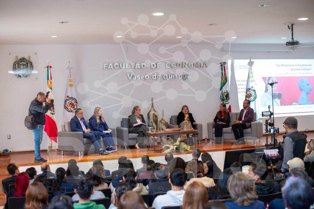 Durante la conferencia también estuvo presente la contralora de la UMSNH, Ana Delia Quintero; el tesorero Enrique Eduardo Román; el secretario Auxiliar, Jorge Manzo y la directora de la Facultad de Economía, Erika Jenny González.
