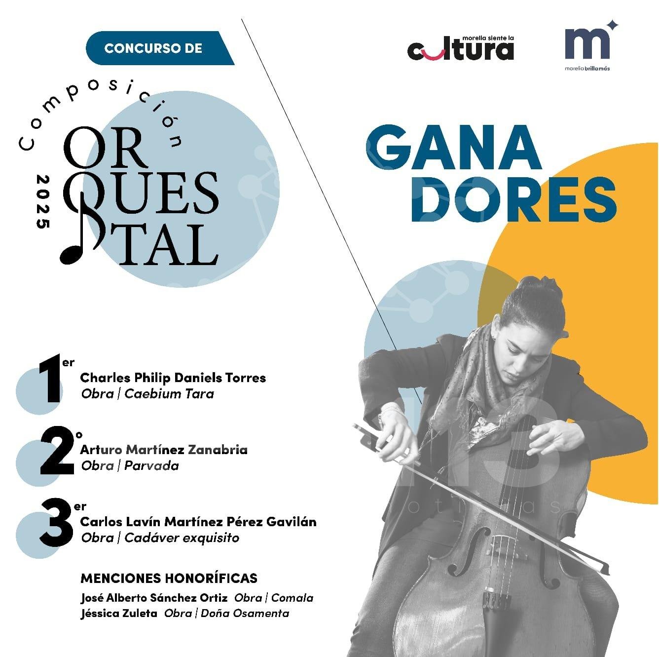 Morelia, Michoacán; 05 de septiembre de 2025.- La Secretaría de Cultura de Morelia (SeCultura) dio a conocer que la pieza “Caebium Tara”, de Charles Philip Daniels Torres, fue la ganadora del Concurso de Composición Orquestal “Morelia, Ciudad Creativa de la Música 2025”.