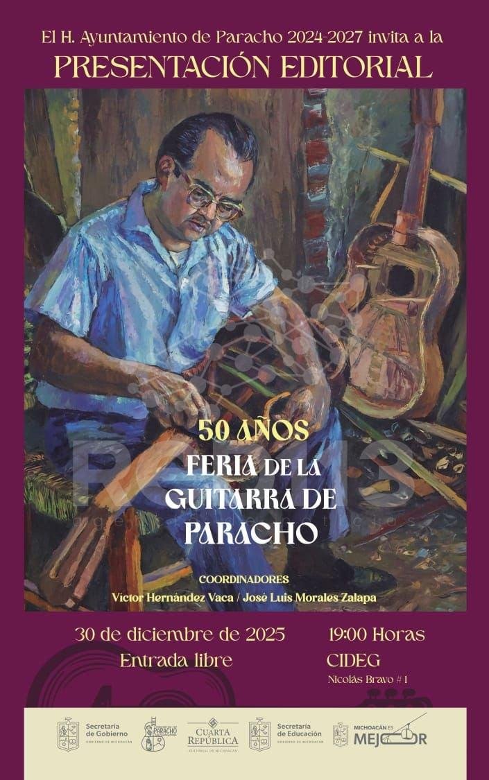 Paracho, Michoacán, 30 de diciembre de 2025.- Este martes se llevará a cabo la presentación del libro «50 años. Feria de la Guitarra de Paracho» en el Centro para la Investigación y Desarrollo de la Guitarra (CIDEG). Este volumen, publicado por la Editorial Cuarta República, rescata la memoria colectiva de las y los habitantes de la región sobre uno de los encuentros culturales de mayor relevancia en la entidad.