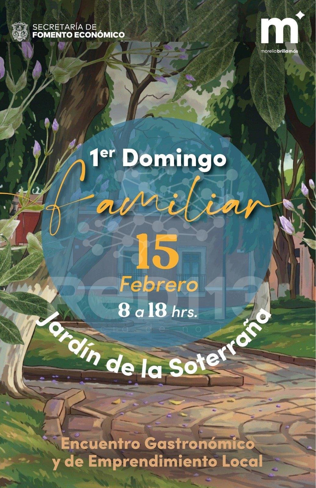 Morelia, Michoacán; 12 de febrero de 2026.– El gobierno encabezado por el presidente municipal de Morelia, Alfonso Martínez Alcázar, a través de la Secretaría de Fomento Económico (Sefeco), invita al encuentro de gastronomía y emprendimientos «Domingo Familiar» que se llevará a cabo el próximo 15 de febrero en el Jardín de La Soterraña.