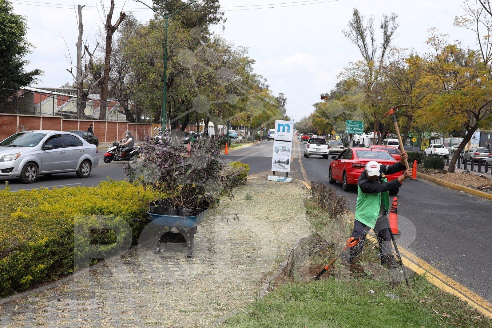 Netzahualcóyotl Vázquez Vargas, titular de la dependencia, explicó que se está dando un mantenimiento a las áreas verdes ubicadas en el camellón de esta calzada, realizando poda de árboles y arbustos, replantando algunos tramos deteriorados, y reacomodando los ornamentos de piedra, para recuperar la belleza de este espacio.