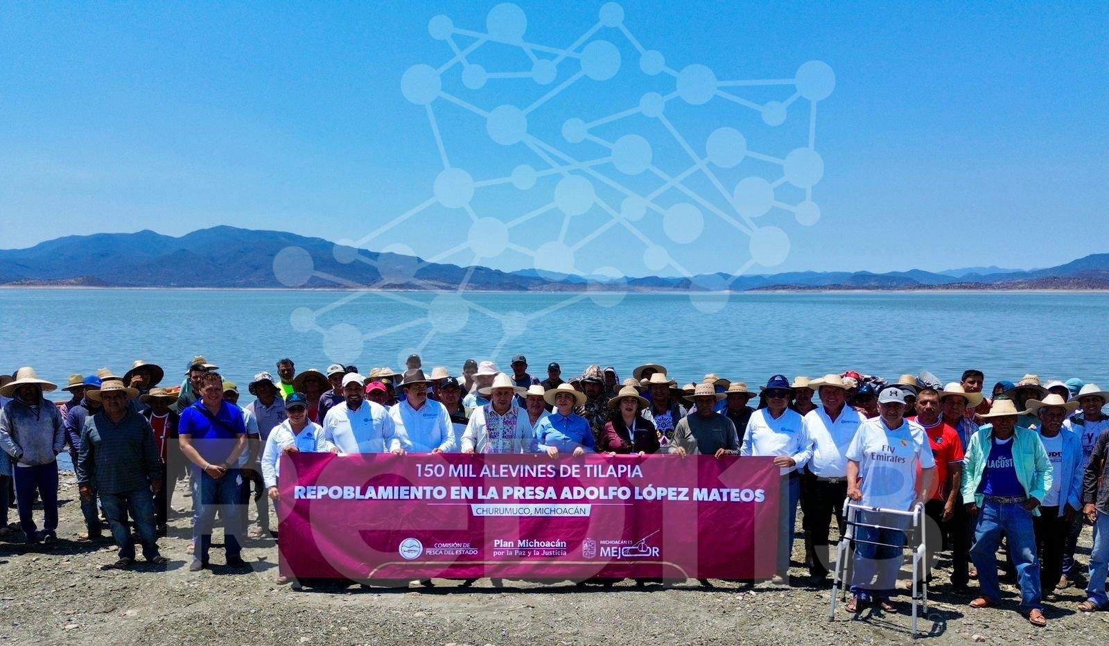 Churumuco, Michoacán, 11 de abril de 2026.- Con el compromiso de fortalecer al sector pesquero y garantizar la seguridad alimentaria en la Tierra Caliente, la Comisión de Pesca del Estado (Compesca) realizó la siembra de 150 mil crías de tilapia en la presa Adolfo López Mateos, en el municipio de Churumuco.