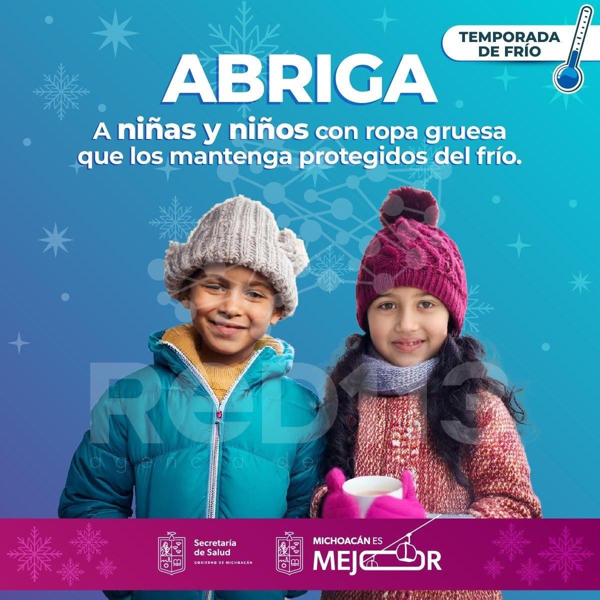 Morelia, Michoacán, 6 de enero de 2025.- Para el próximo regreso a clases, la Secretaría de Salud de Michoacán (SSM) invita a padres y madres de familia a proteger a sus hijos del frío y de las infecciones respiratorias agudas, abrigándolos con la técnica de la cebolla, que consiste en colocar varias capas de ropa y alimentarlos sanamente, para prevenir así las complicaciones por neumonía.