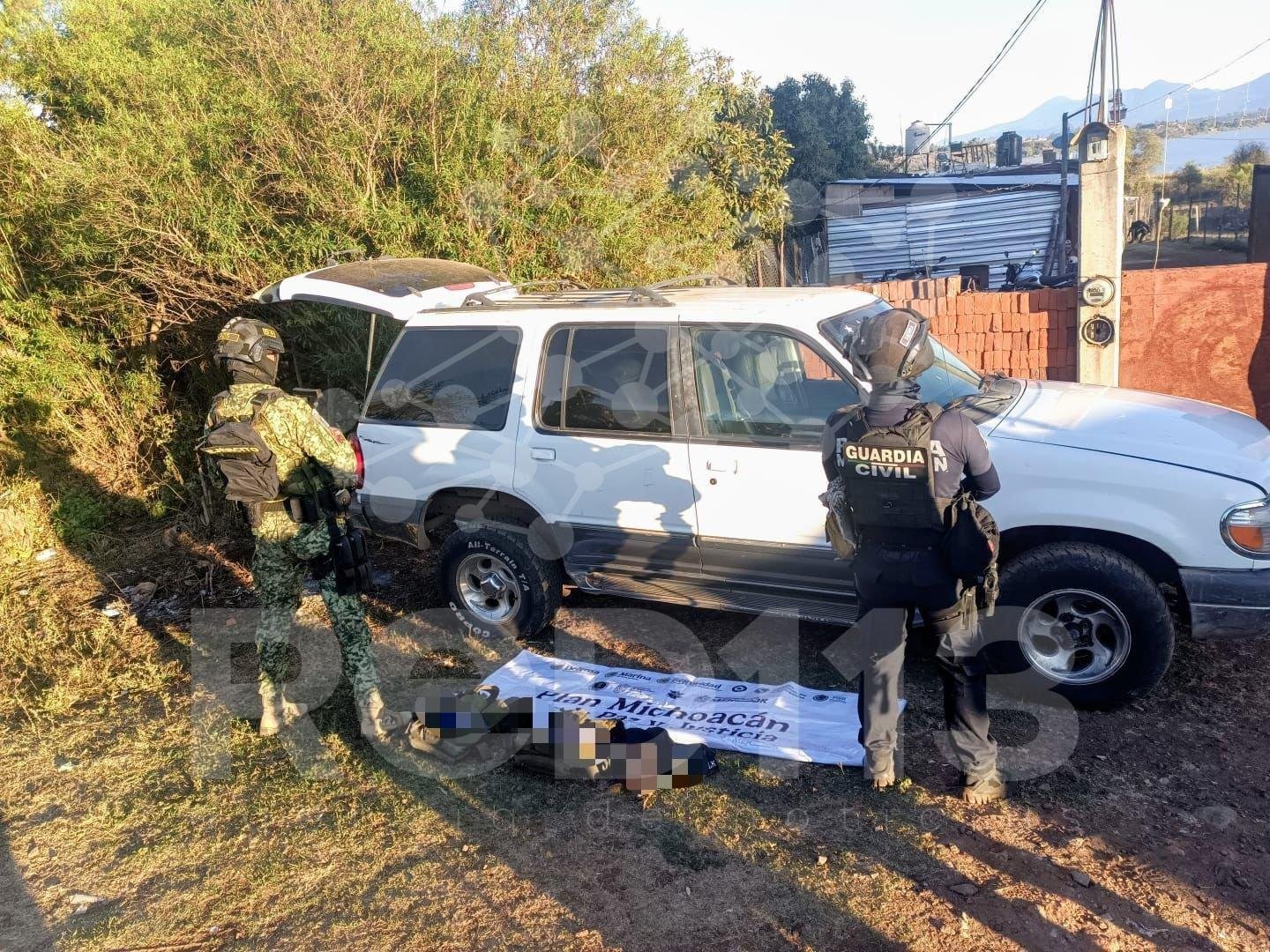 Derivado de las acciones del Plan Paricutín, se incrementaron los patrullajes preventivos para la disuasión del delito en el tramo carretero Erongarícuaro-Chupícuaro; ahí, agentes de la Guardia Civil y del Ejército Mexicano ubicaron una camioneta marca Ford abandonada a la orilla de la cinta asfáltica, con las puertas abiertas.