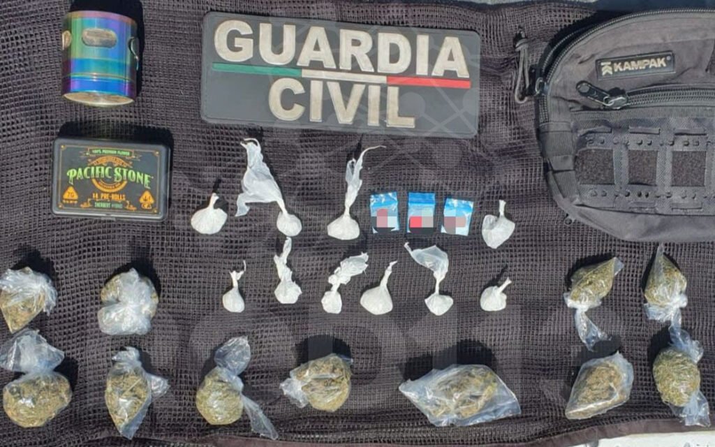 Los guardias civiles desplegados en los municipios de Uruapan y de Zitácuaro, decomisaron 19 envoltorios con una sustancia granulosa, con las características propias de la metanfetamina y 11 con hierba verde y seca, al parecer marihuana.